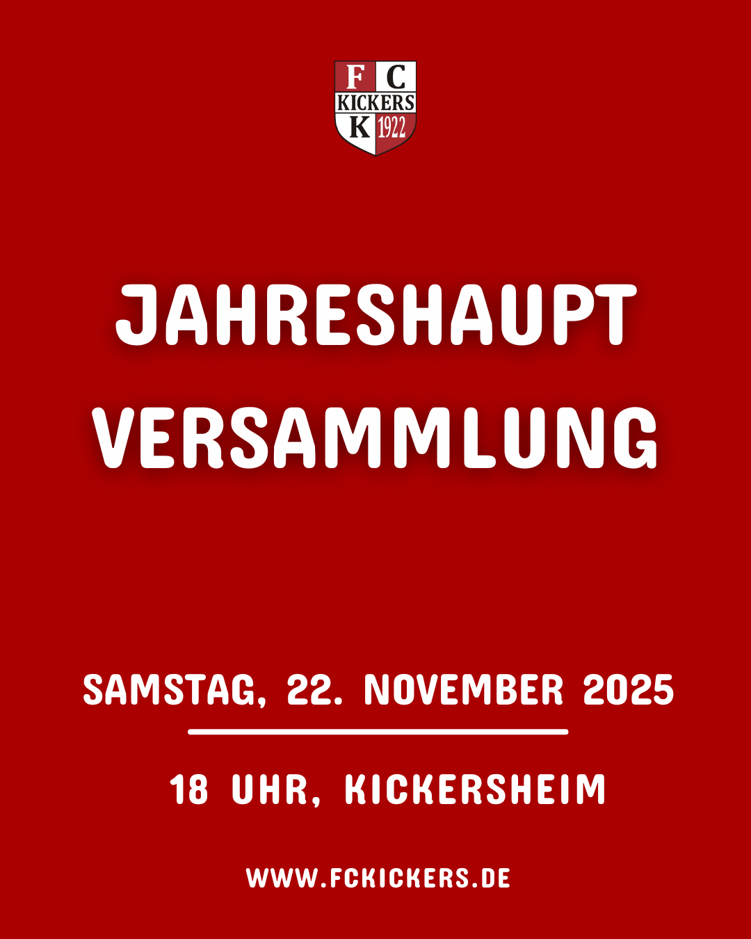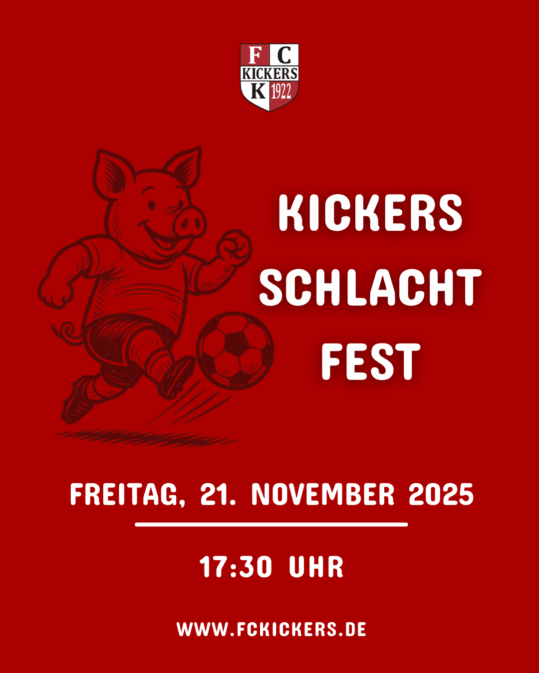 Am Freitag, 21.11.2025 findet unser Kickers Schlachtfest statt.