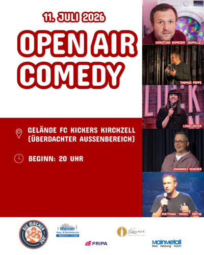 Am 11. Juli 2026 verwandelt sich das Gelände des FC Kickers in die wohl lustigste Open Air Bühne der Region!